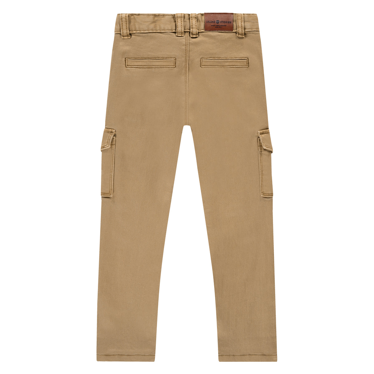 Toffe cargo pants van Stains & Stories. Deze broek is verkrijgbaar in de kleuren curry en forrest.
