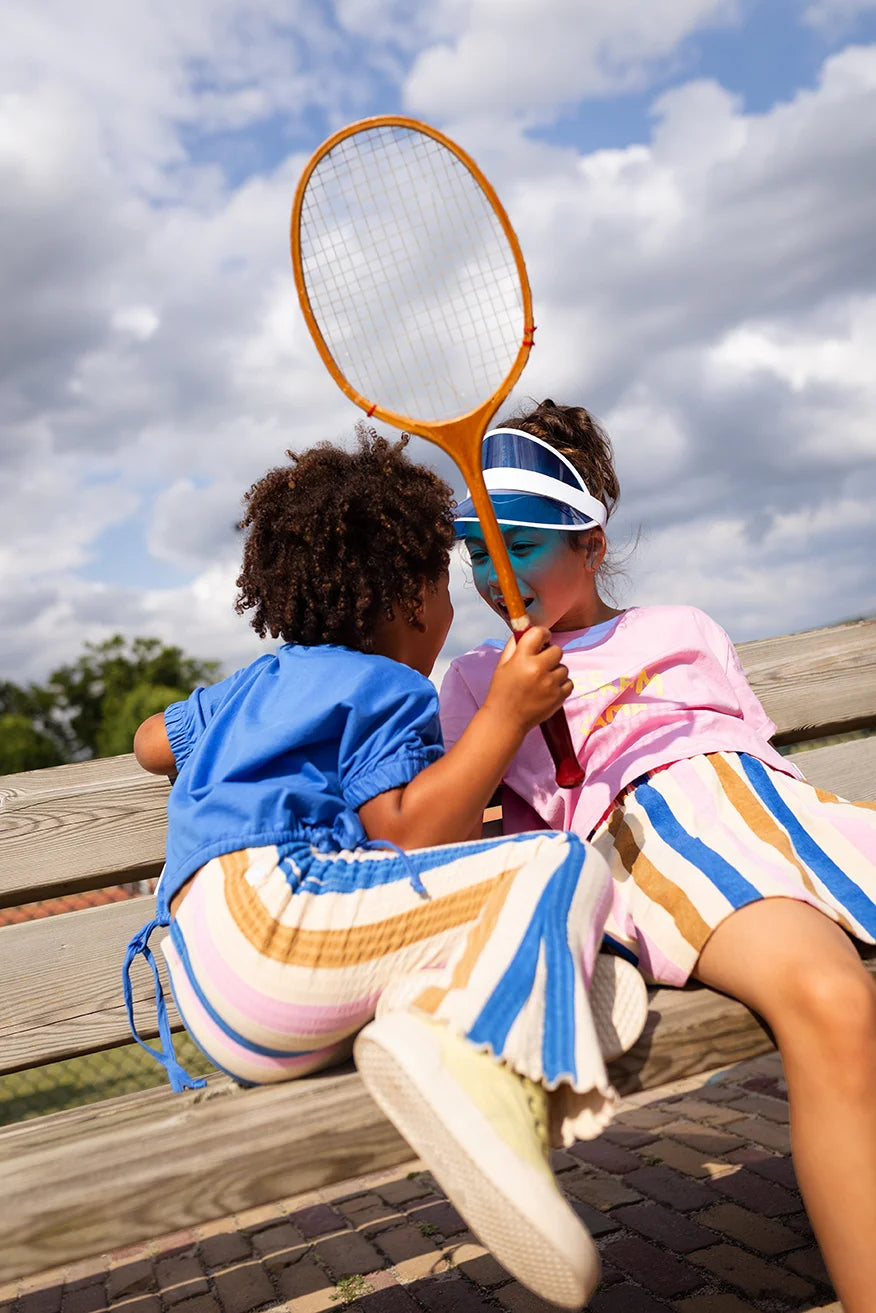 Deze veelzijdige flared legging is ideaal voor actieve meisjes die van trendy, comfortabele kleding houden. De zachte, rekbare stof zorgt ervoor dat je kleintje alle bewegingsvrijheid heeft om te rennen, springen en spelen, terwijl de flared fit en klassieke strepen voor een coole, retro-geïnspireerde uitstraling zorgen.