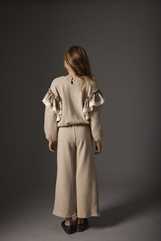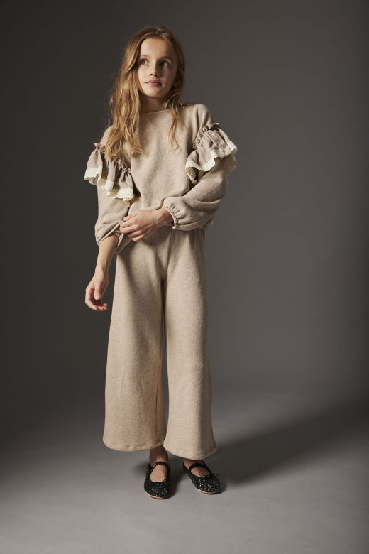 Deze toffe wijde broek zicht onwijs comfy en is super om te combineren met de bijpassende sweater voor de complete look.