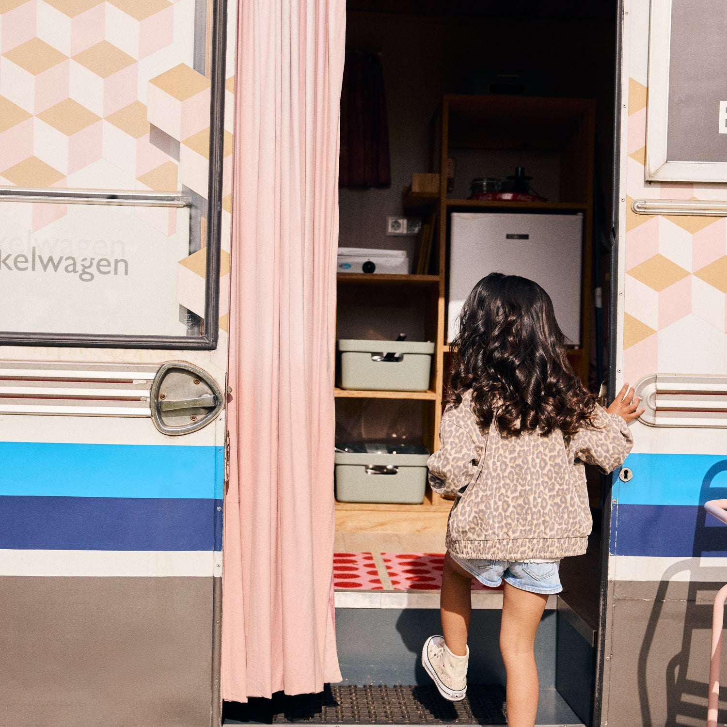 - Warme sandshell kleur met speelse print
