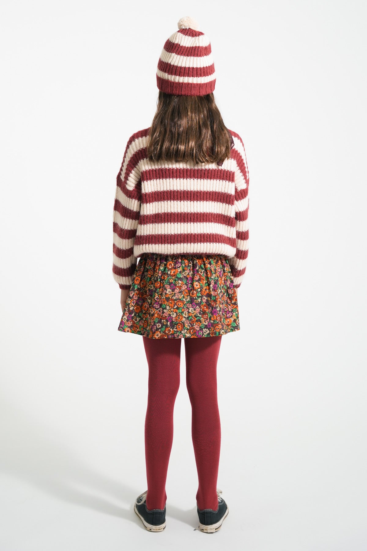Laat je kleintje stralen in deze prachtige rok van Piupiuchick. Het levendige bloemenpatroon tovert een speelse en energieke uitstraling op elke dag, met een subtiele mix van rood, oranje, roze, paars en groene accenten. Deze rok is ideaal voor dagen vol avontuur en plezier, terwijl hij een stijlvolle touch geeft aan elke outfit.