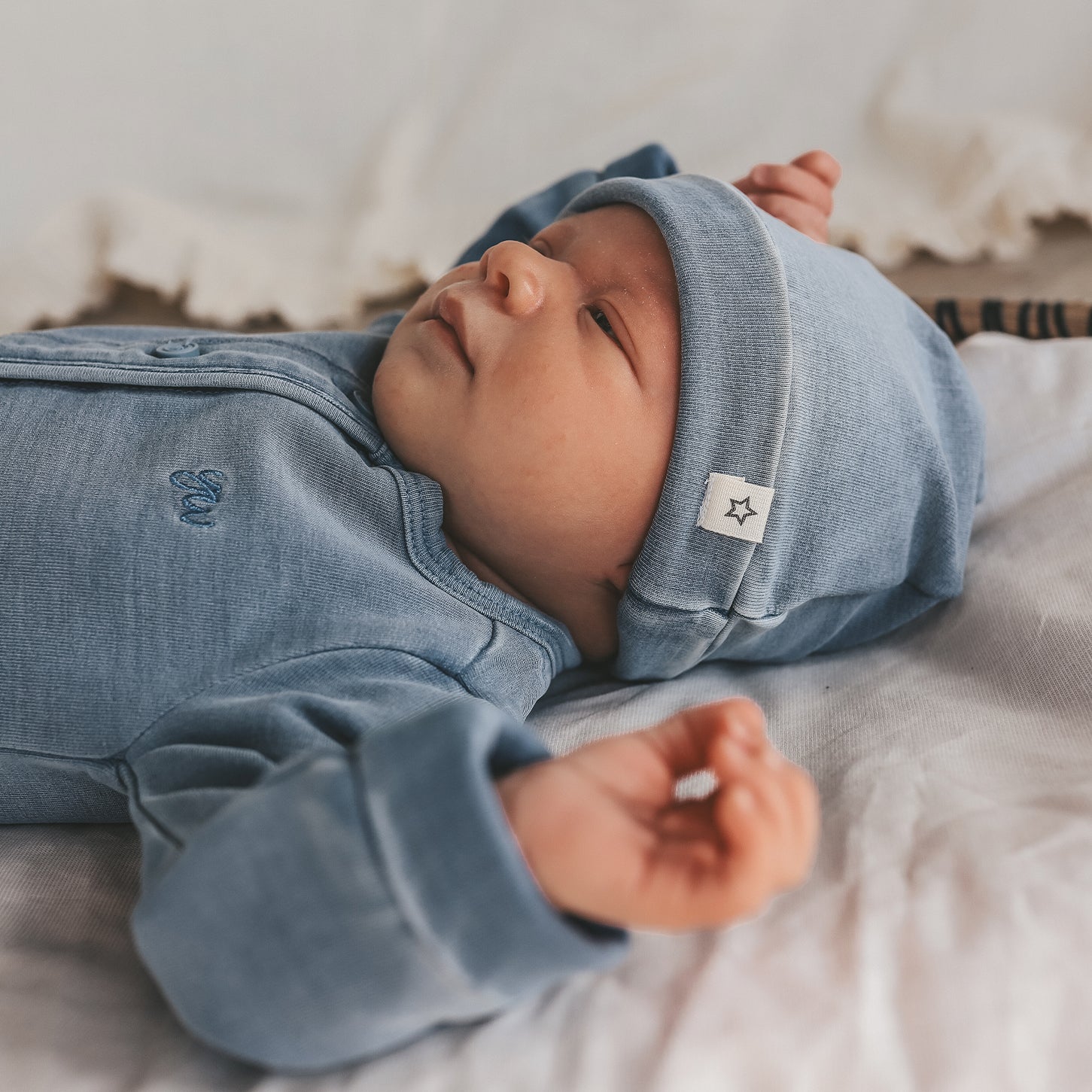Laat je kleintje stralen in deze heerlijk zachte gebreide onesie van Your Wishes. De kleur Bluestone is een tijdloze, rustgevende tint die perfect past bij zowel jongens als meisjes. Gemaakt van een comfortabele katoenmix met fijne stretch, zodat je baby vrij kan bewegen en zich de hele dag door prettig voelt.