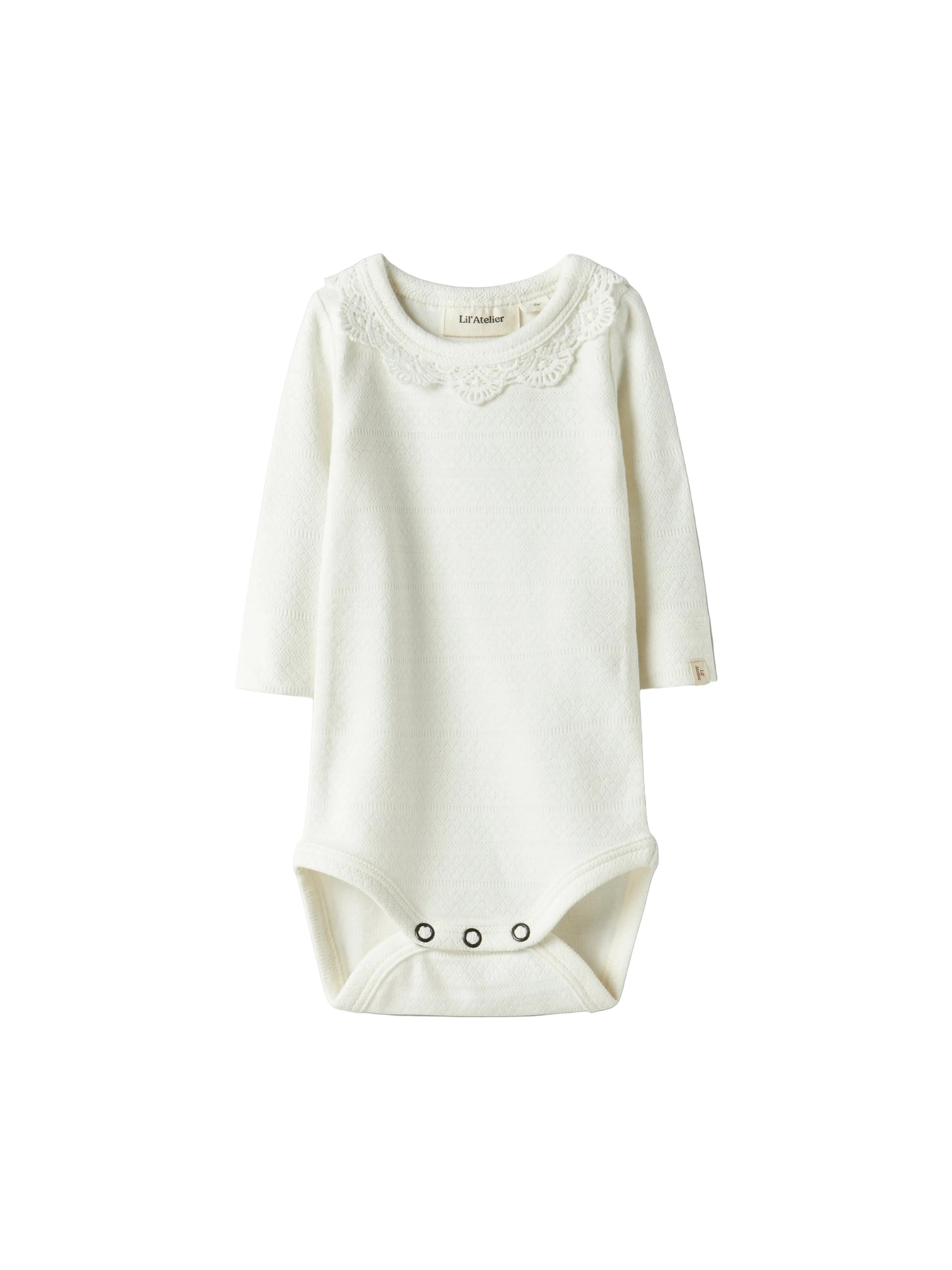Super mooie en zachte romper met prachtige ruffle kraag van Lil Atelier.