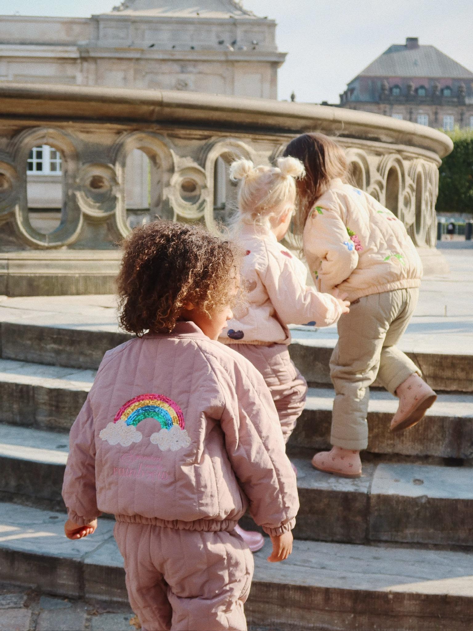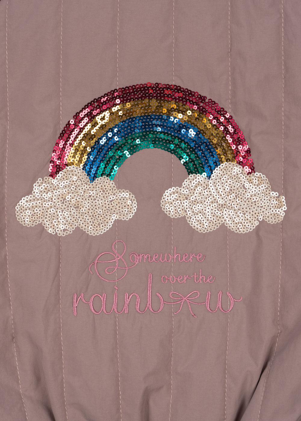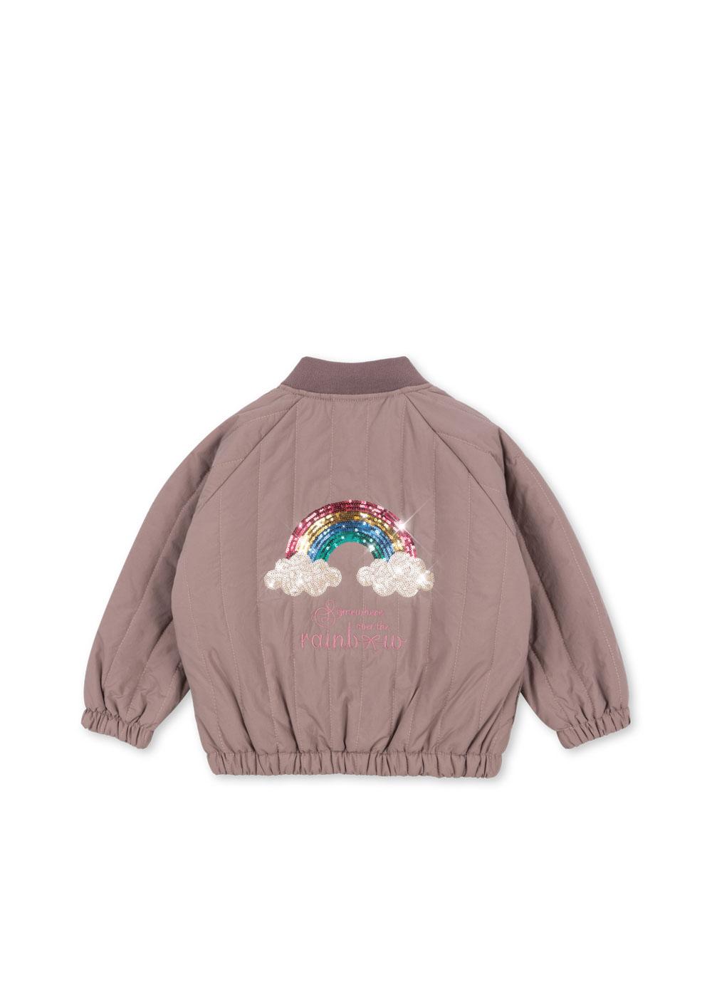 Prachtige juno Bomber van Konges Sjold met glitter regenboog op de achterkant.