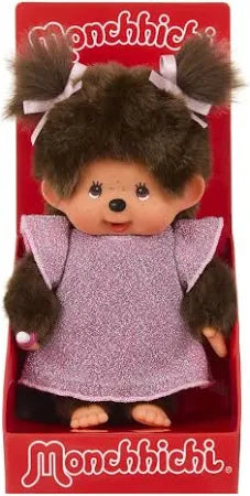 Klaar voor haar moment in de spotlights! Dit betoverende meisje van het Japanse merk Monchhichi steelt gegarandeerd de show in haar fonkelende roze glitterjurk. Met haar guitige snoetje, zachte harige armpjes en schattige staartje is ze een droom voor kleine poppenouders die houden van nét dat beetje extra.