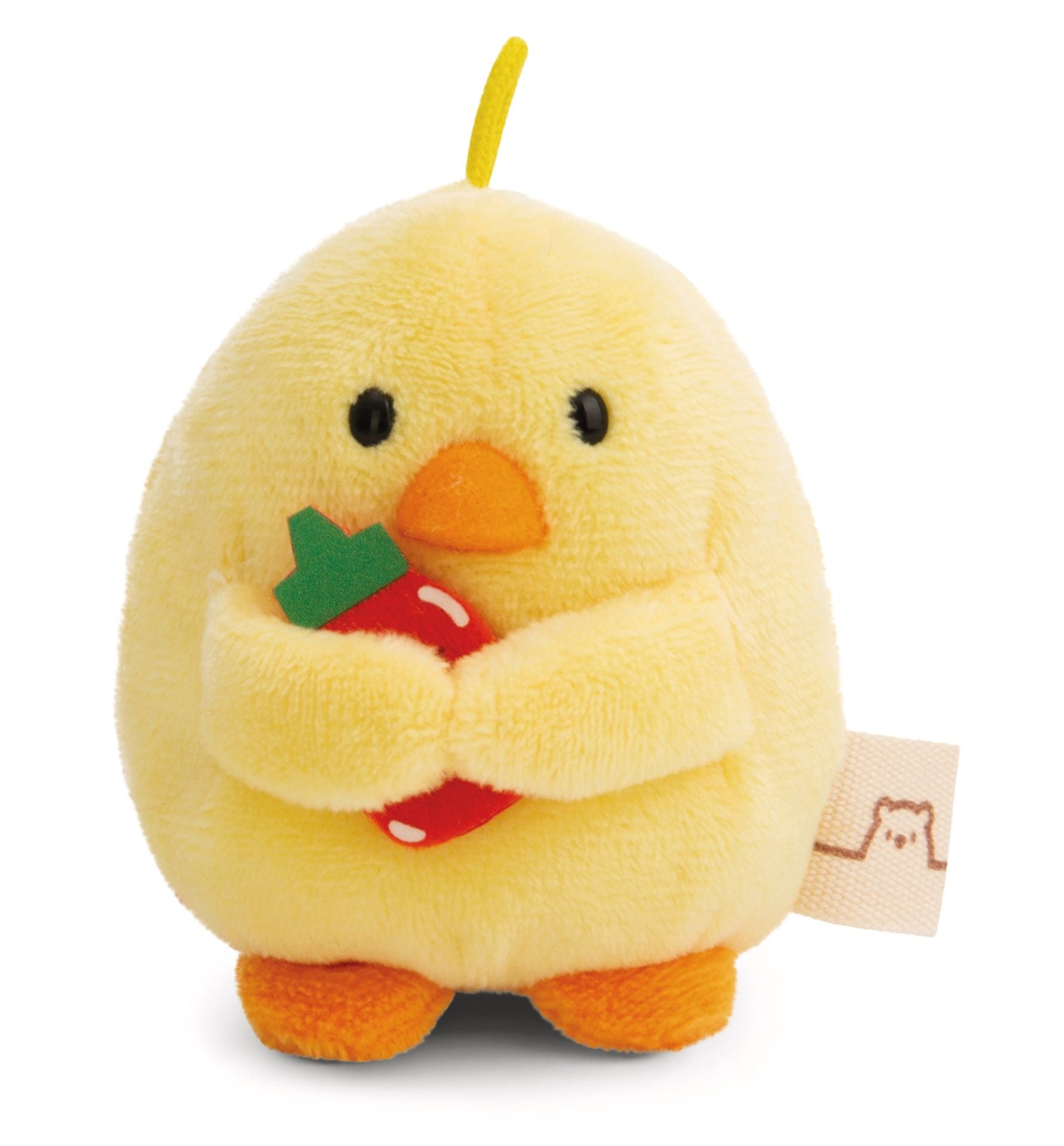 "Hallo, ik ben Tschieps en ik ben super dapper!" Tschieps is een citroengeel kuikentje van 8 cm, gemaakt van heerlijk zacht NICI-pluche. Tschieps draagt een pluizig, bruin kostuum dat lijkt op een kippenpoot en wordt geleverd met een humeurig figuurtje, een klein flesje chilisaus en een geliefd vriendje. Deze betoverende 3-in-1 knuffelset zit verpakt in een geschenkdoos met informatie over de naam, karaktereigenschappen, het speelconcept en de andere Mymochi-personages.