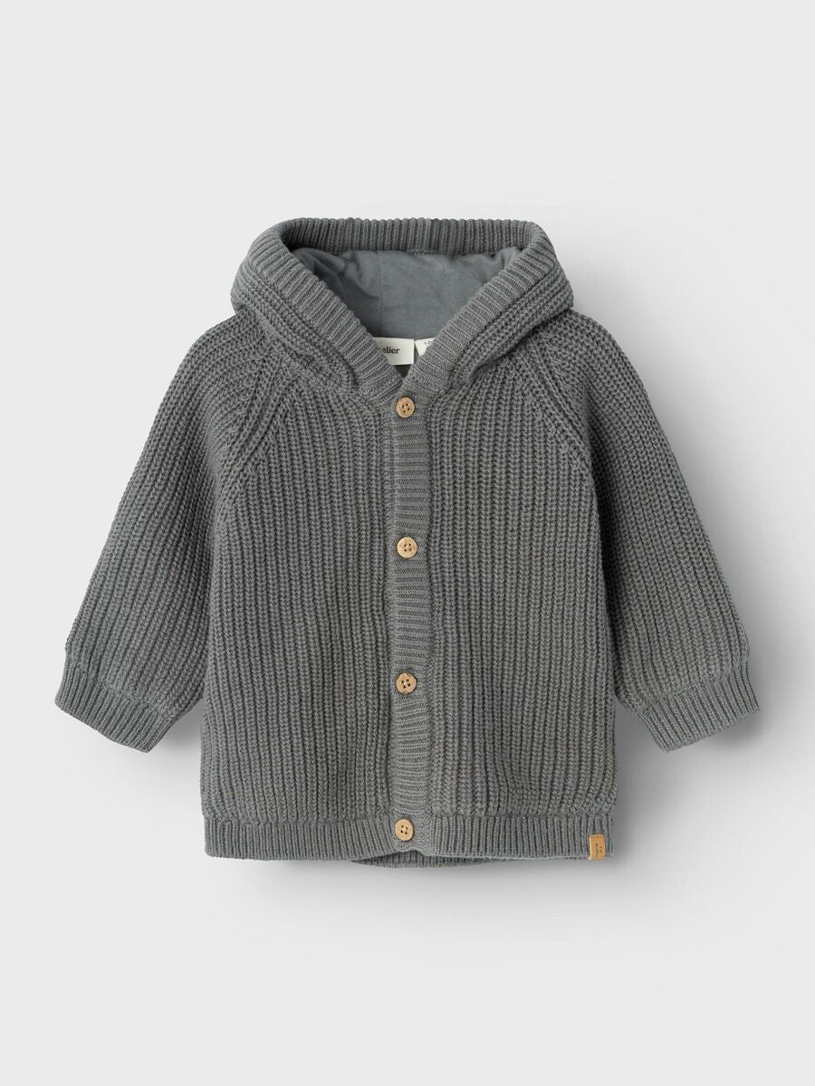 Fijn gebreid jas met katoenen voering en capuchon van Lil Atelier.