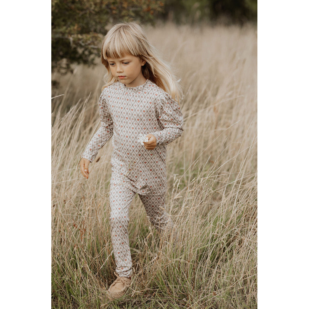 Fijne longsleeve met hogere kraag en allover print. De blouse heeft een ronde hals met een klein randje waardoor hij prettig te dragen is onder jurken, omdat de print erdoorheen schijnt. De blouse heeft een klein pofmouwtje. De pasvorm is klassiek als een basic, maar dan met een extra touch door de print.
