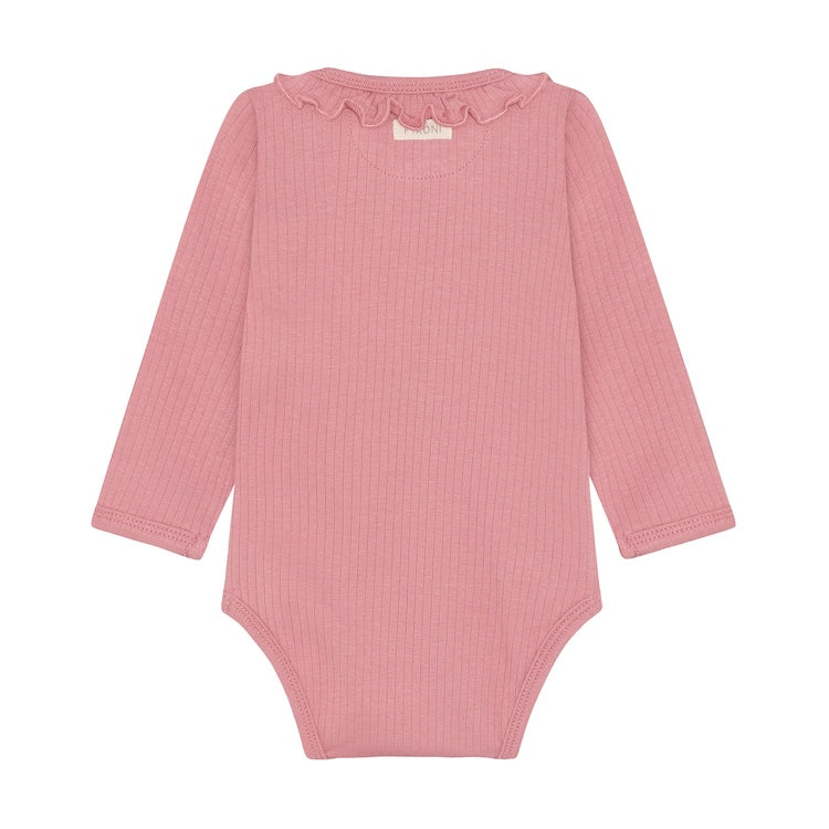 Romper longsleeve rib Bleached Mauve streep, Fixoni