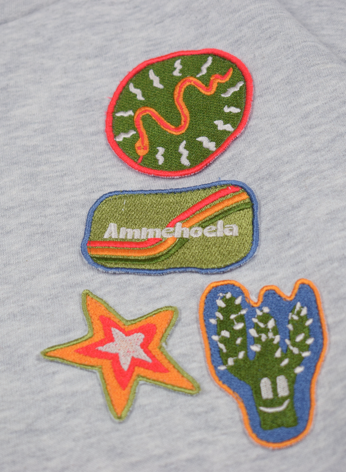 Toffe gemeleerd grijze hoodie met apllicaties van Amemhoela. Maar de look compleet met de bijpassende sweatpants jaxon.